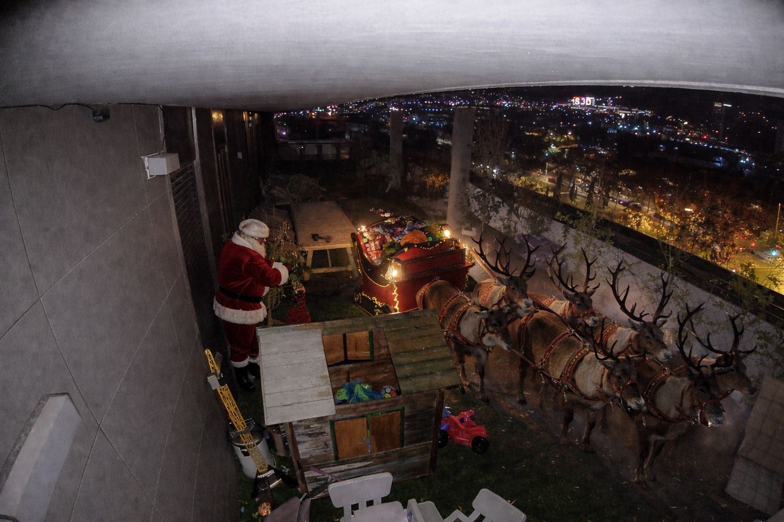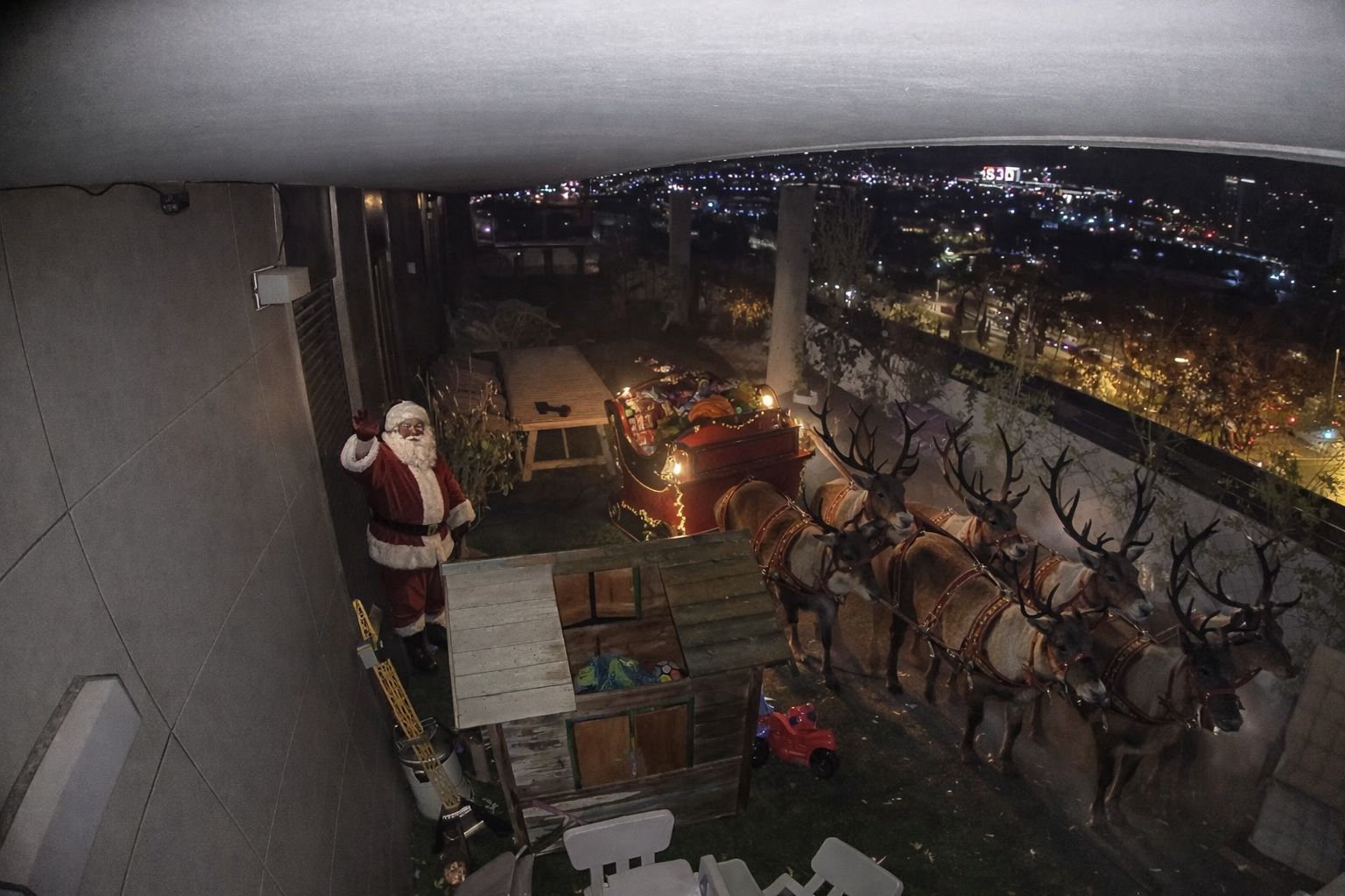 En esta primera fotografía tenemos a Papa Noel comenzando a descargar los regalos con su trineo tirado por renos «aparcado» en la terraza. Nótese que en total son 6 renos de una edad que calculo debe estar entre los 6 y los 10 años por el color de su hocico.