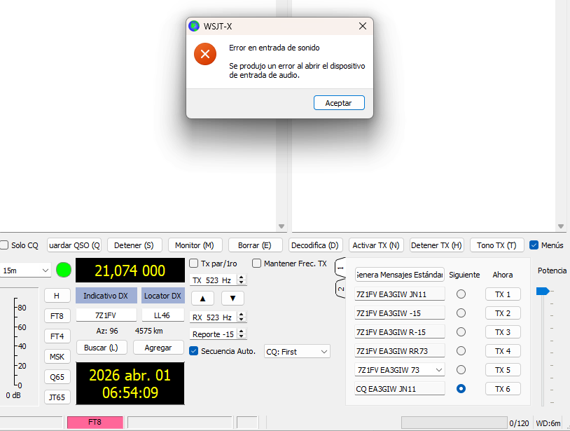 Error de entrada de sonido en WSJT-x