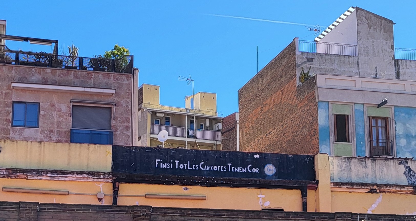 Paseaba hace unos días por Sants, en Barcelona, y me llamó la atención lo que un vecino o vecina decidió pintar en su fachada: «Fins i tot les carxofes tenen cor» o lo que sería en español «Incluso las alcachofas tienen corazón».